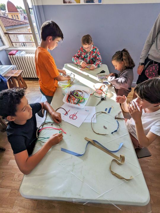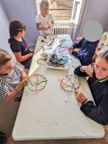 À la fin de la visite, nous avons participé à un atelier créatif. Chacun a contribué à fabriquer sa propre œuvre intitulée "Attrape-rêve". Nous avons utilisé des rubans, des fils et des morceaux de tissu, comme Jeanne Goutelle. Ce bel attrape-rêves est maintenant accroché au plafond de notre classe, et il nous rappelle cette belle journée pleine de couleurs, d’idées et d’imagination.