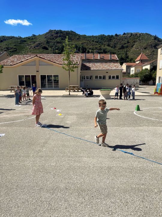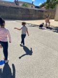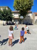 Mardi 2 septembre, sous le soleil, les élèves de GS-CP et de CE1-CE2 ont participé à une rencontre sportive afin de commencer l'année en faisant connaissance et en coopérant.