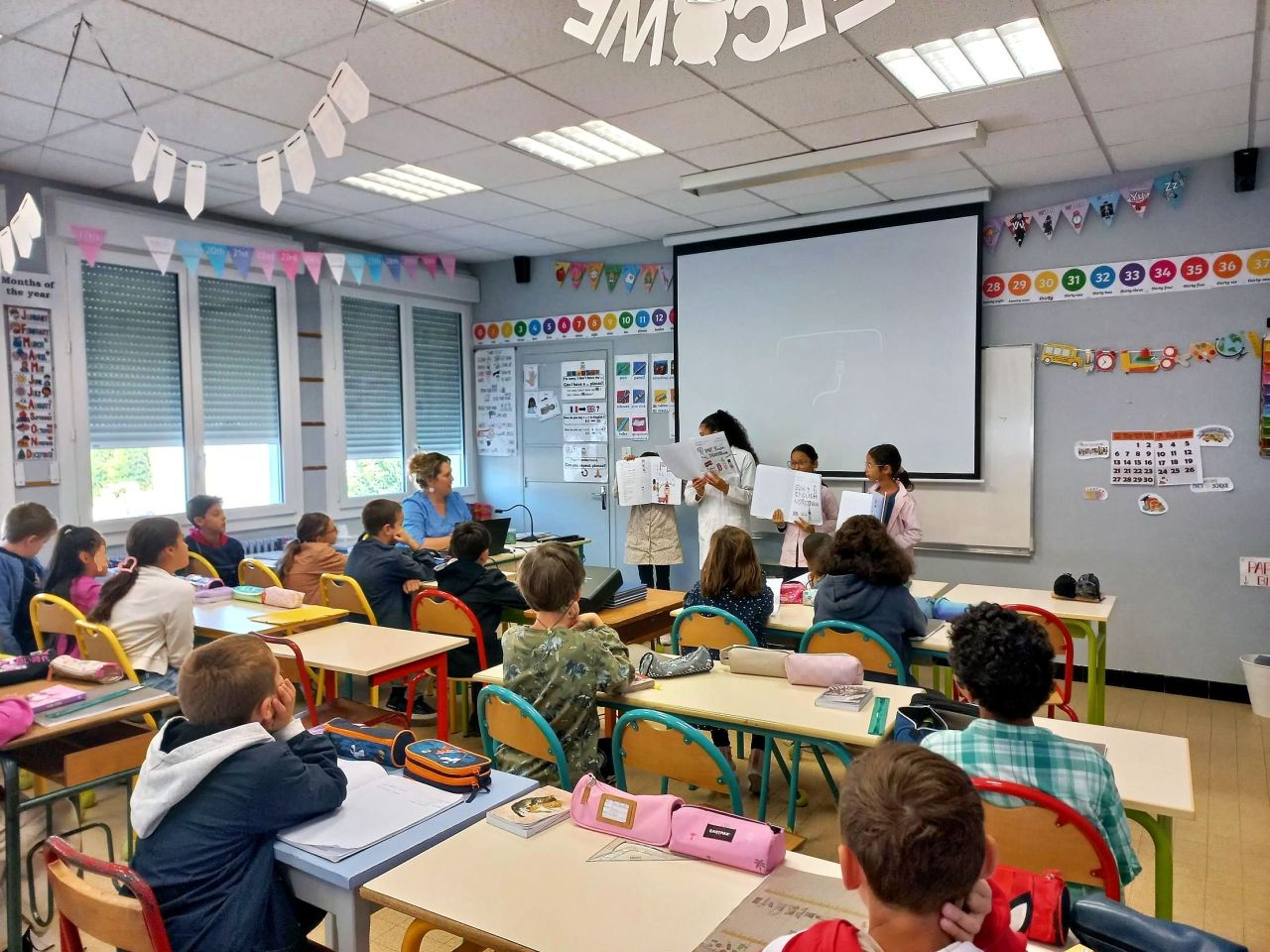 Dans la classe de CM1-CM2, Mme Hélin a commencé la nouvelle année d’anglais sous le signe de la créativité et de la culture anglophone. Pour inaugurer ce nouveau chapitre, les élèves ont participé à un concours de la plus jolie page de garde, un moment à la fois artistique, culturel et convivial.