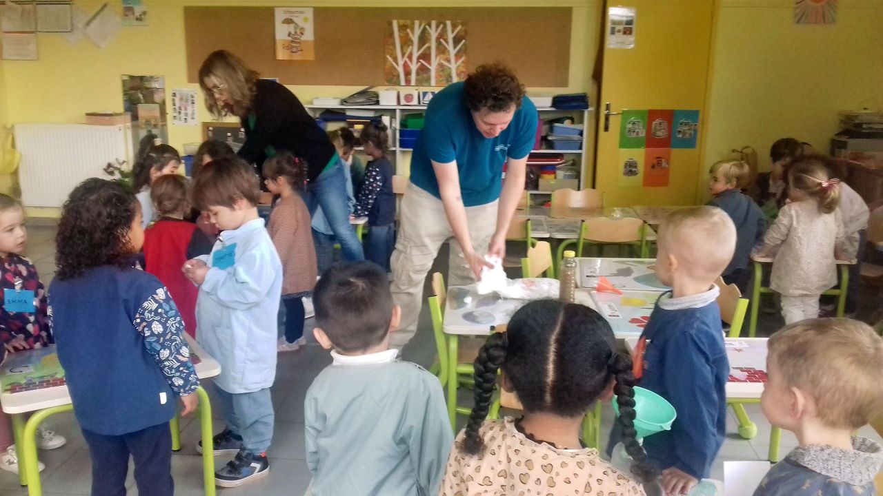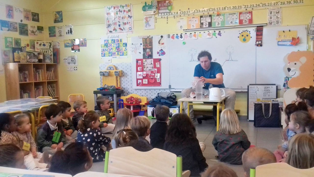 Lundi 3 novembre Monsieur Rivière (intervenant Arche Agglo) est venu nous faire découvrir le cycle de l'eau .Par des expériences nous avons appris que l'eau peut être :